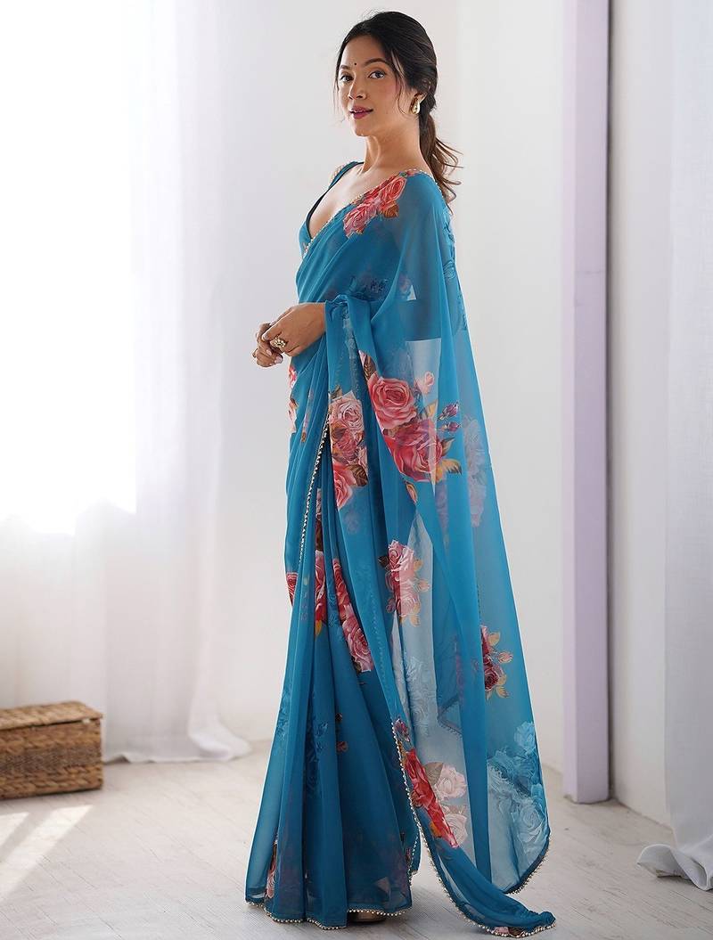 Product Name | Georgette Printed Saree With Moti Lace Border | |