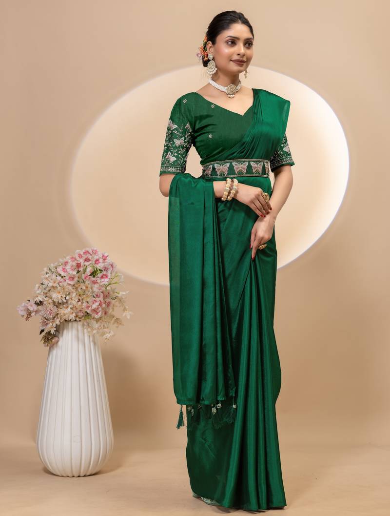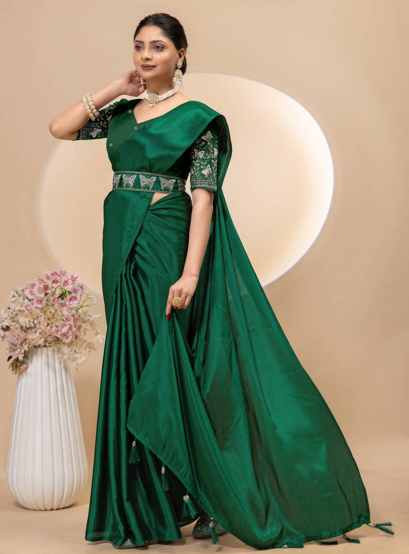 | Product Name | Green Chinon Silk Saree With Embrodery Work Blouse And Waist Belt | |
