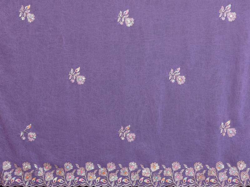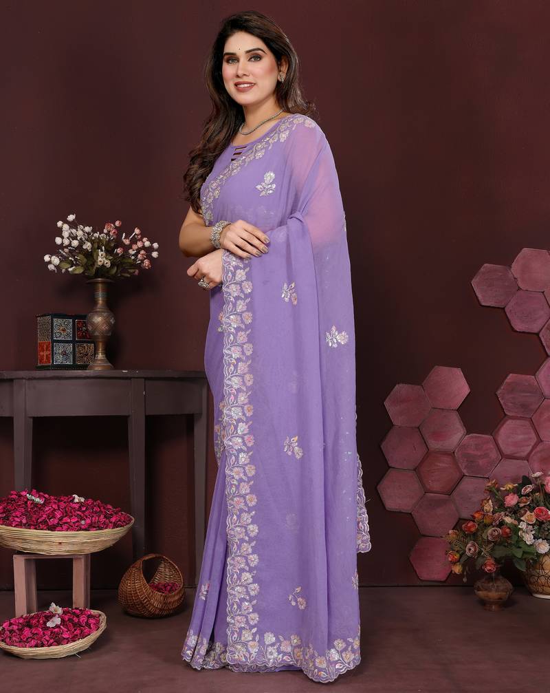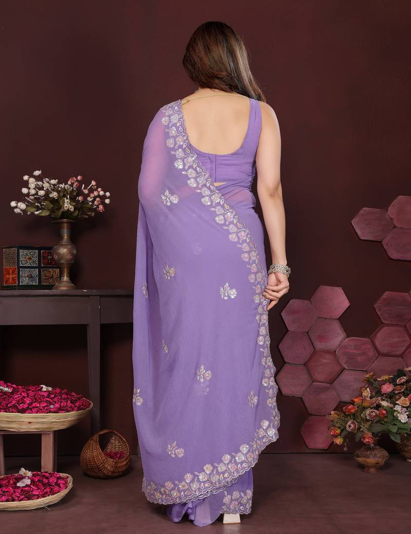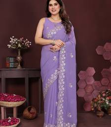 Lavender saree look georgette silk blend embroidery work saree and blouse with beautiful tone
