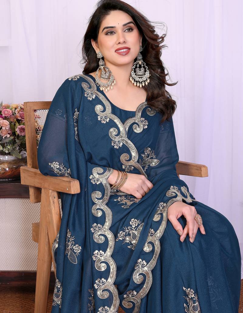 | Product Description | *Fabrics Heavy Star Georgette Silk* *Pattern Sequins Embroidery Work Saree With Embroidery Work Blouse** *Blouse Heavy Star Georgette Silk* *Sari Length* 5.50 *Blouse Length* 0.80 *Saree Look Rich Heavy Star Georgette Silk Saree With Sequins Embroidery Work Saree And Blouse With Beautiful Tone Colour Saree* |