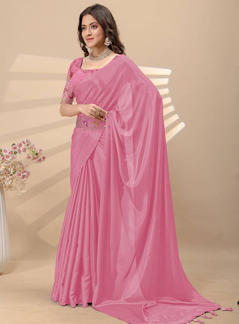 | Product Name | Pink Chinon Silk Saree With Embrodery Work Blouse And Waist Belt | |