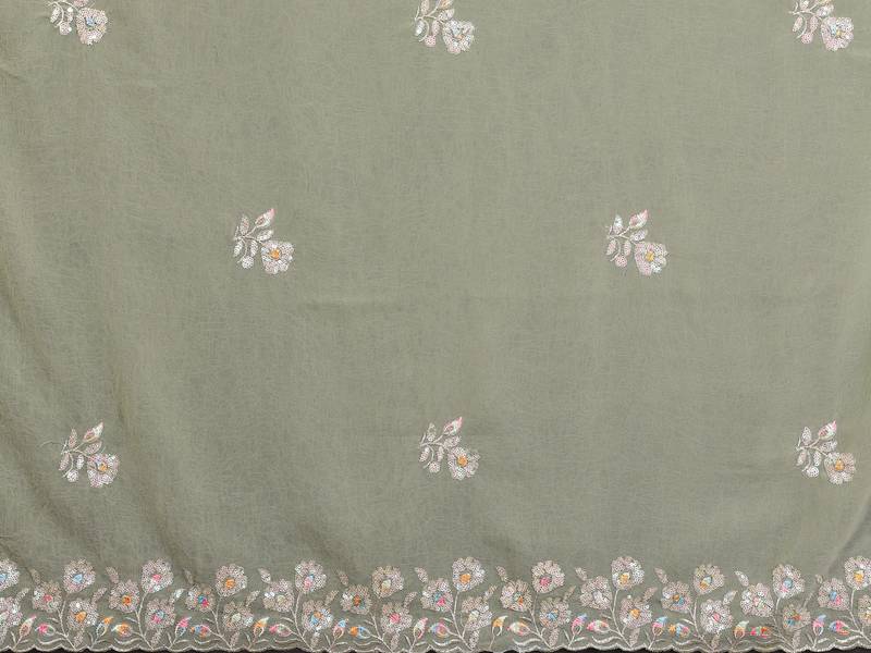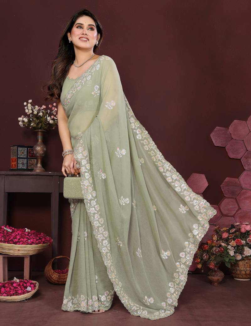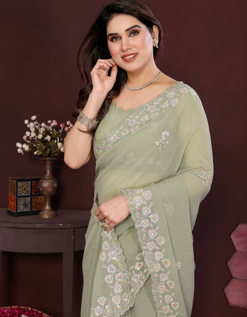 Pista saree look georgette silk blend embroidery work saree and blouse with beautiful tone