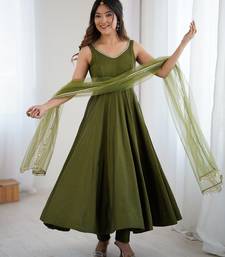 | Product Name | Pure Roman Silk Chanderi Fabric Fully Flair Anarkali Gown With Duppta And Pent Set Ready To Wear | |