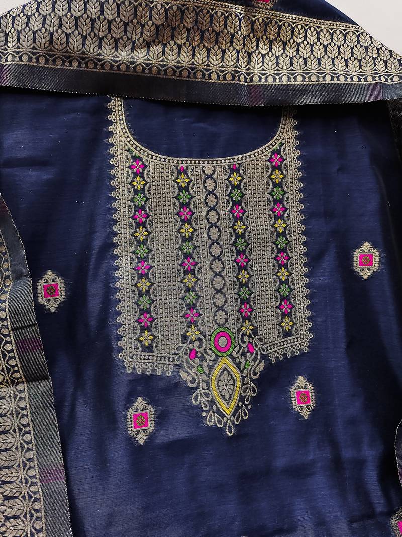 Product Name Un Stitch Dress Materials Pure Chanderi Banarasi Silk Top Soft Cotton Bottom And Woven Chanderi Banarasi Silk Dupatta