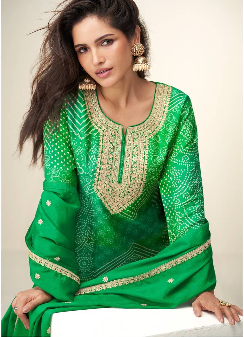 | Product Name | Women Green Heavy Chinon With Digital Print & Embroidery Codding Sequence Work | |
