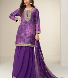 Women violet heavy chinon with digital print & embroidery codding sequence work