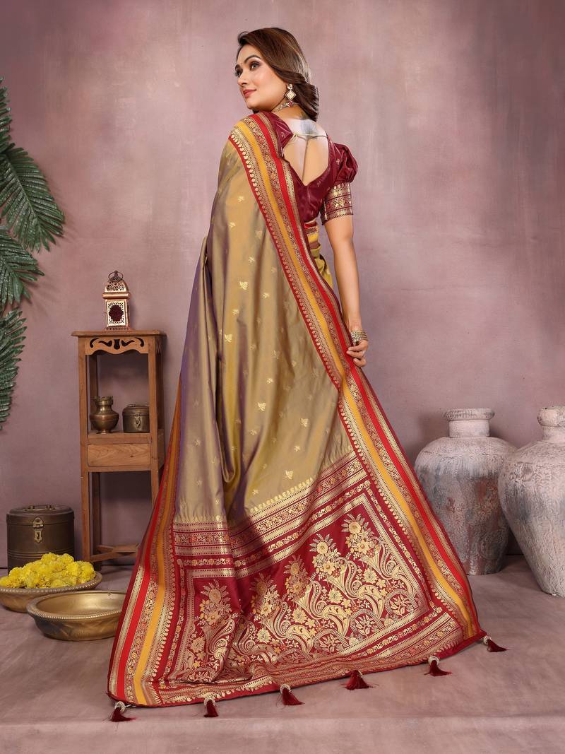 | Product Name | Beige Color Handloom Silk Fabric Jacquard Weaving Designer Partywear Saree | |