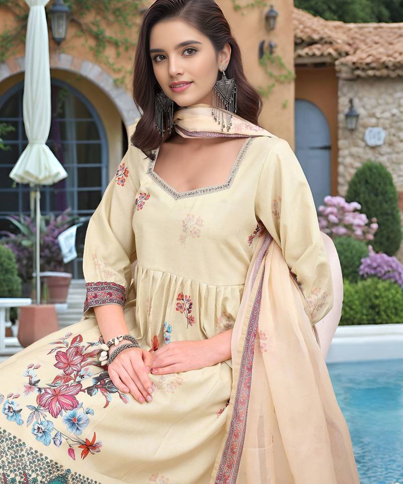 | Product Name | Beige Color Linen Fabric Digital Printed Ethnic Readymade Suit For Trendy Looks | |