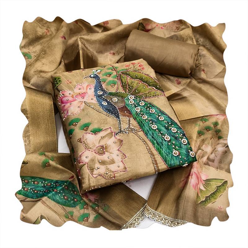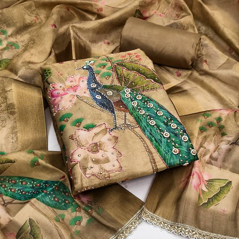 Beige color simmer cotton fabric designer salwar kameez with elegant hand work unstitched