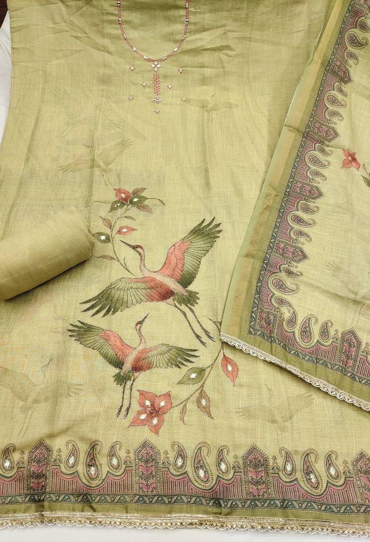 Beige color smart and elegant lilen cotton salwar kameez unstitched