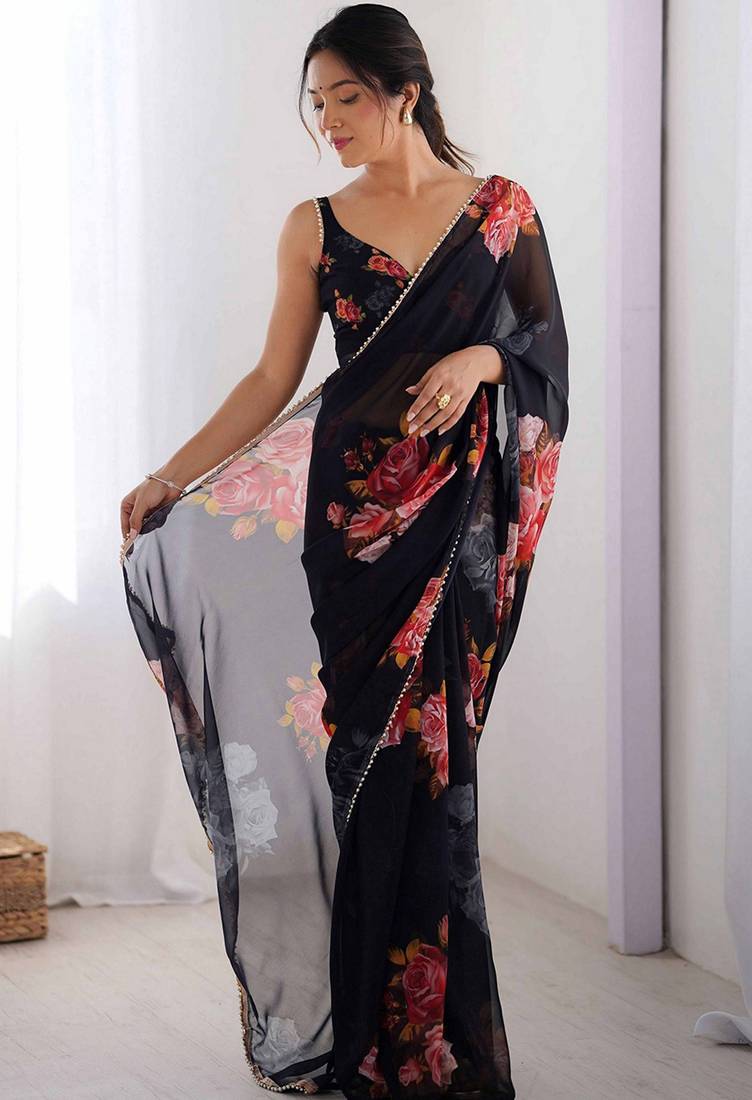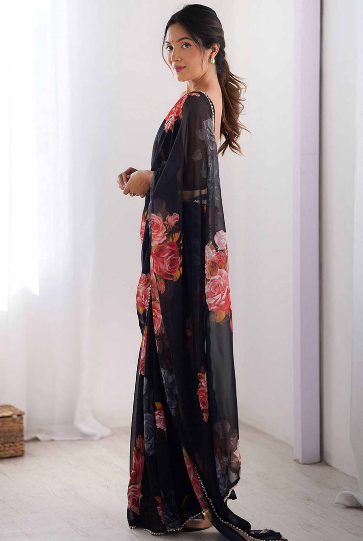 | Product Name | Black Color Beautiful Floral Printed Ceremonial Georgette Saree | |