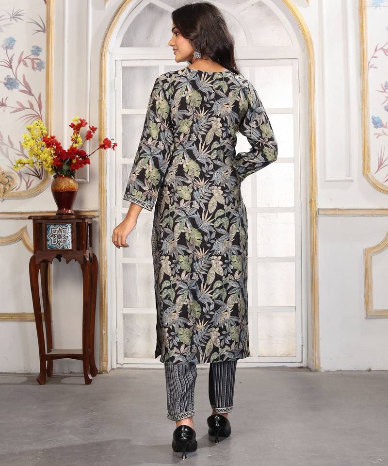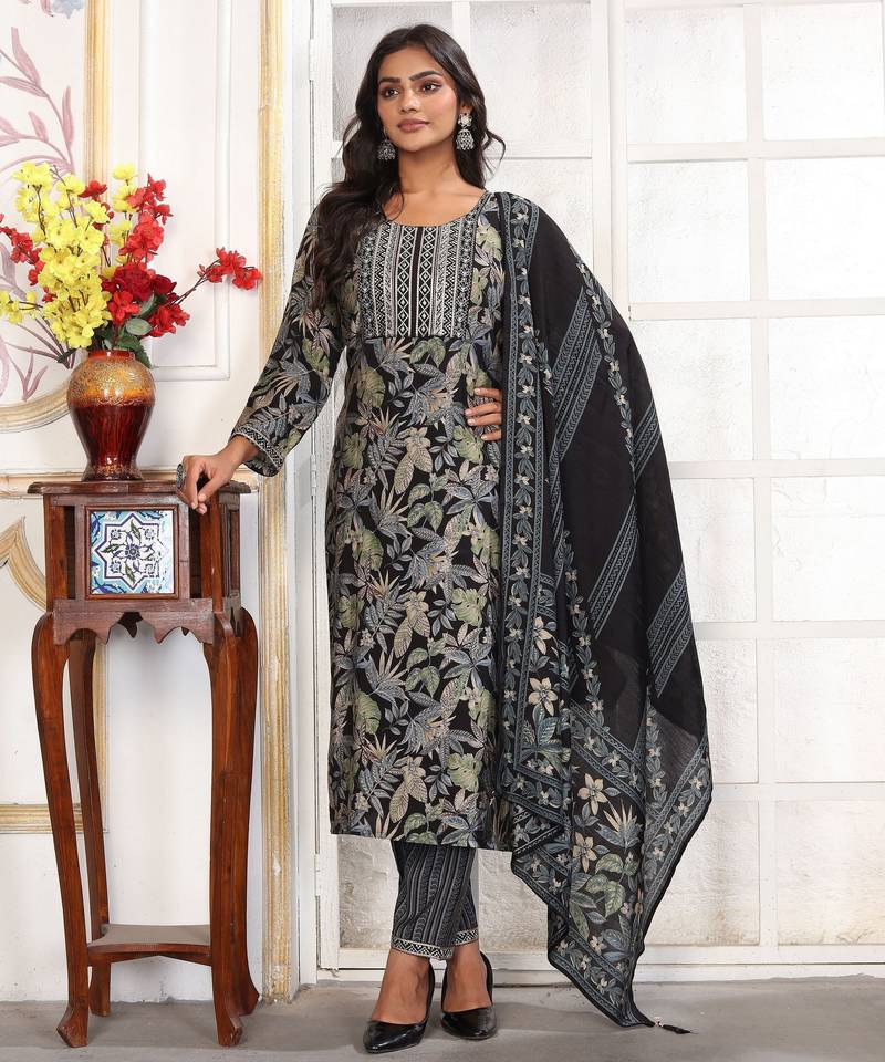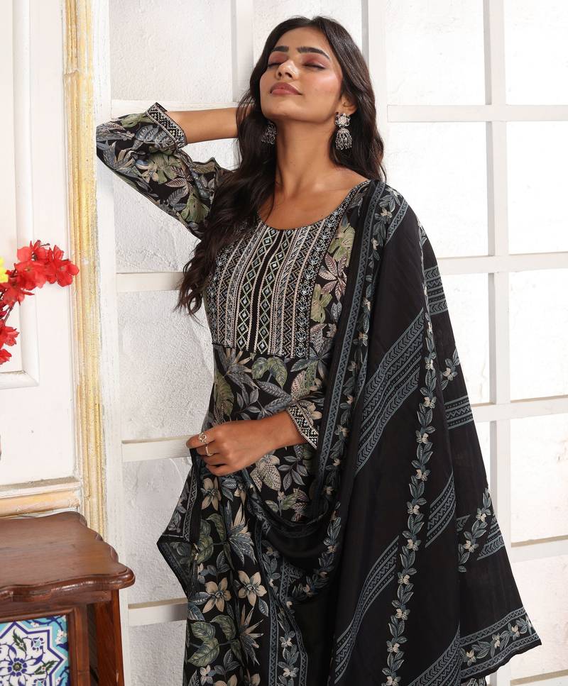 | Product Name | Black Color Chanderi Fabric Designer Printed Readymade Kurta Set For Trendy Girls | |
