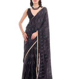 Black color chinon fabric ready to wear saree for elegant bollywood style