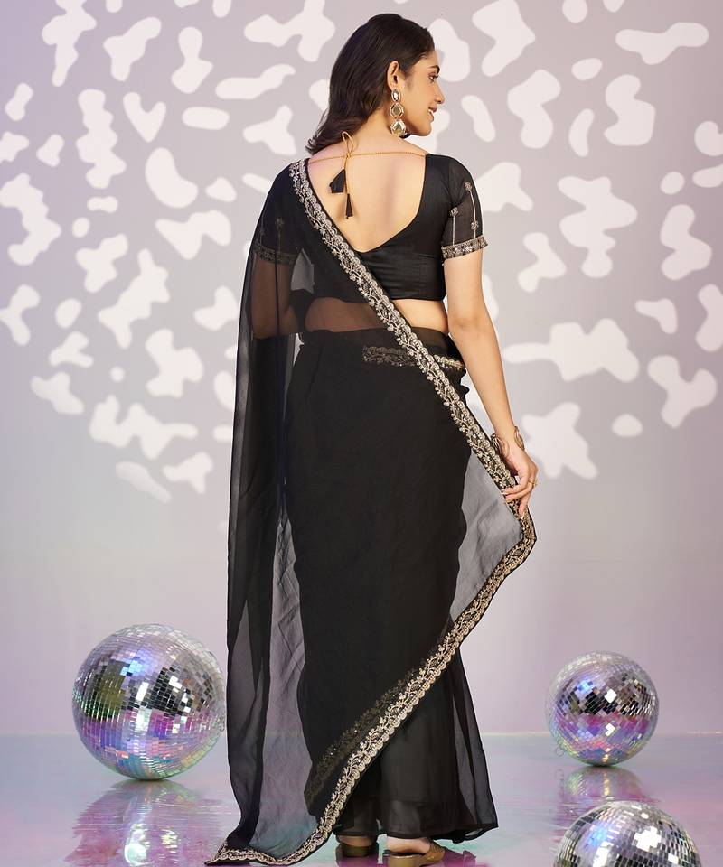 Black color ethnic embroidered simmer chiffon fabric girlie partywear saree