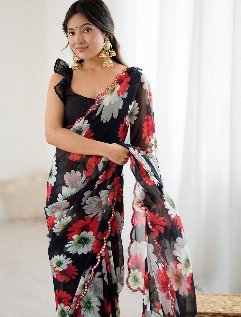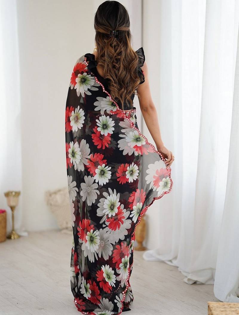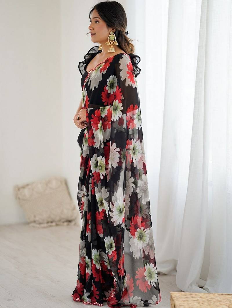 | Product Name | Black Color Georgette Fabric Designe Floral Printed Bollywood Style Saree | |