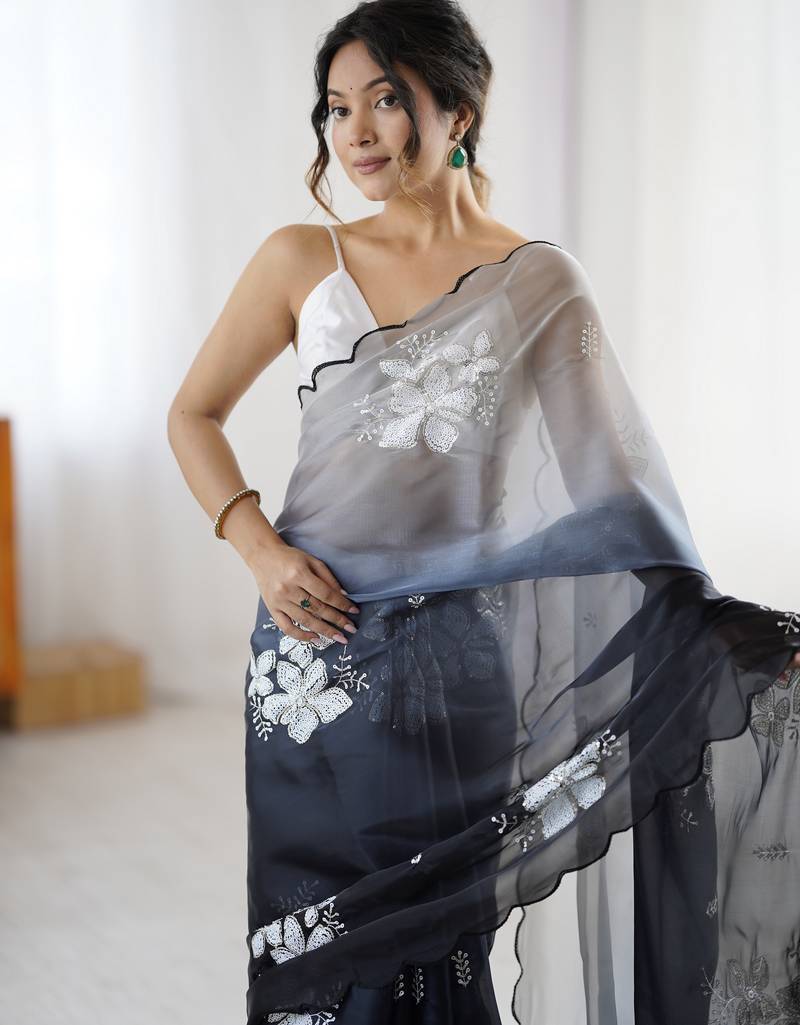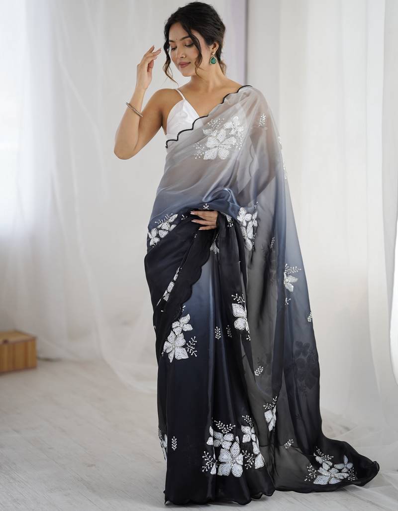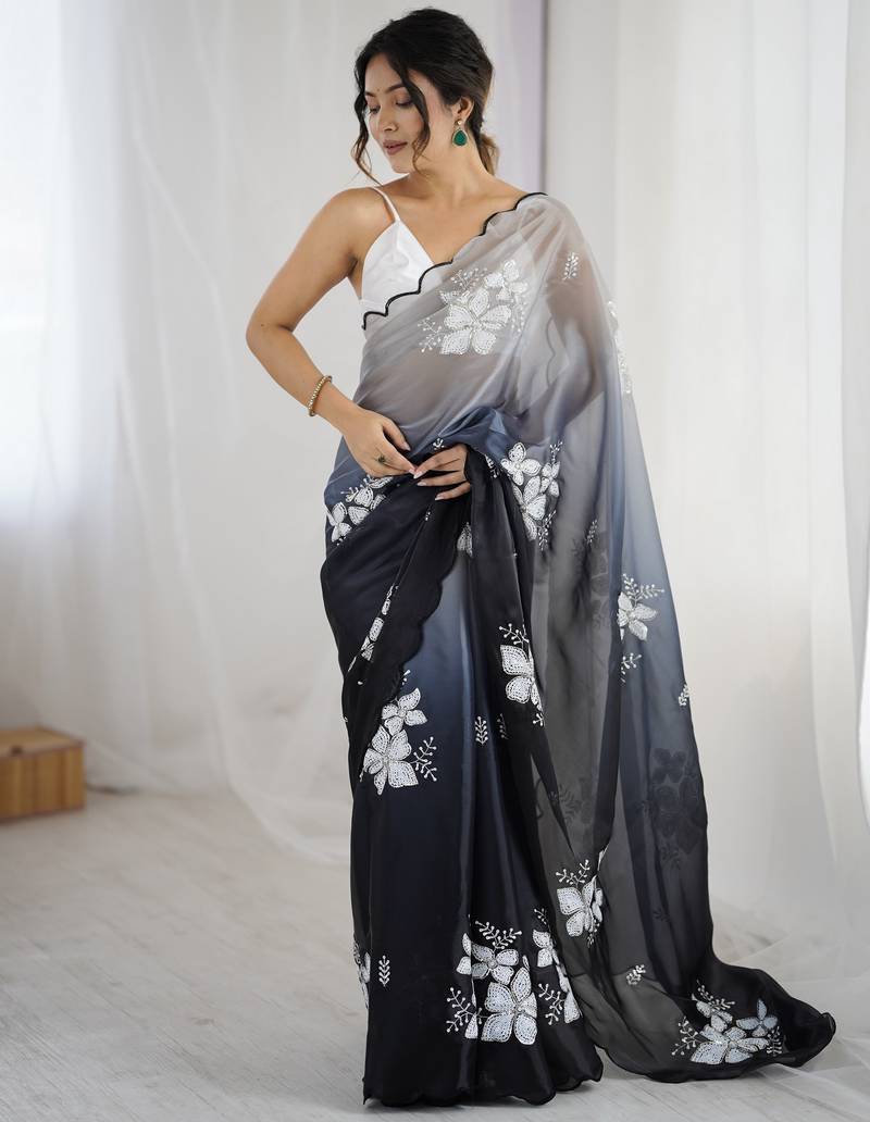 Black color glamorous jimmy choo fabric beautiful embroidered saree
