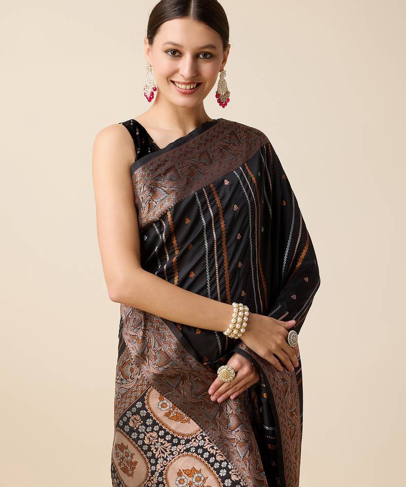 black color jacquard art silk graceful woven designer saree
