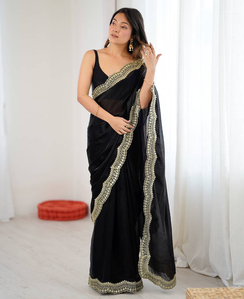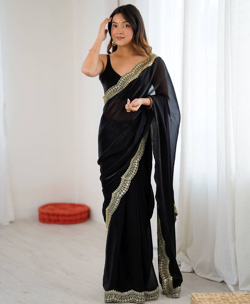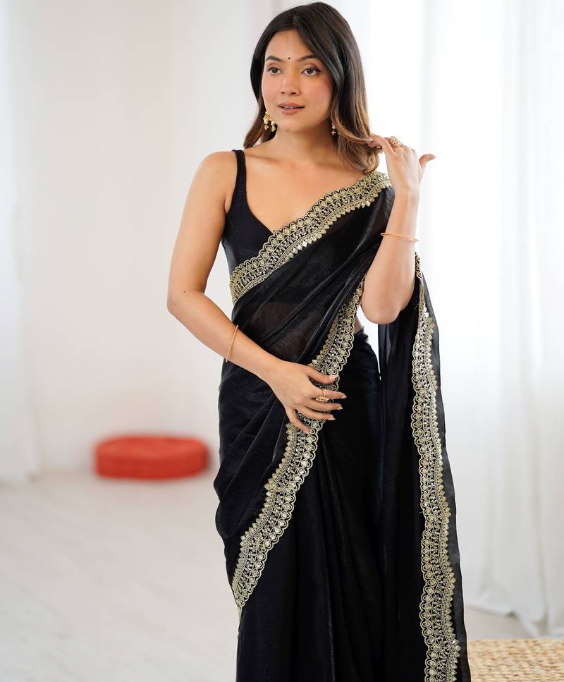 | Product Name | Black Color Stylish Fendy Satin Silk Fabric Bollywood Style Saree | |
