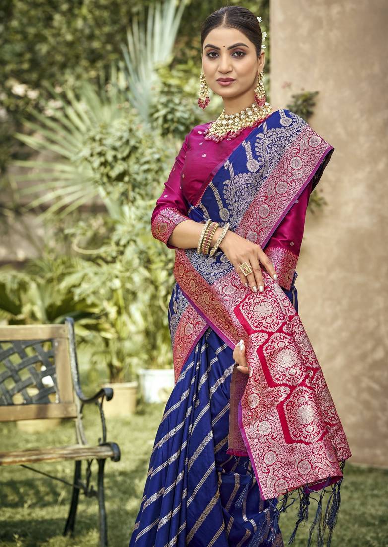 Blue color banarasi silk blend fabric ethnic woven designer saree