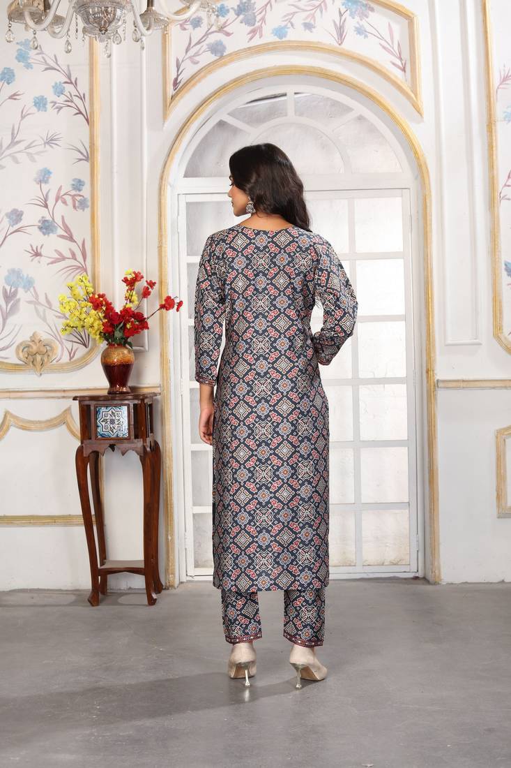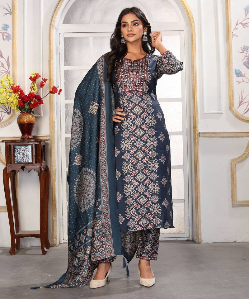 | Product Name | Blue Color Chanderi Fabric Designer Printed Readymade Kurta Set For Trendy Girls | |