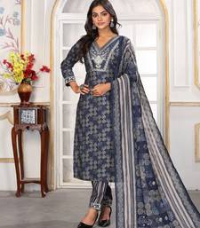 Blue color chanderi fabric designer printed readymade kurta set for trendy girls