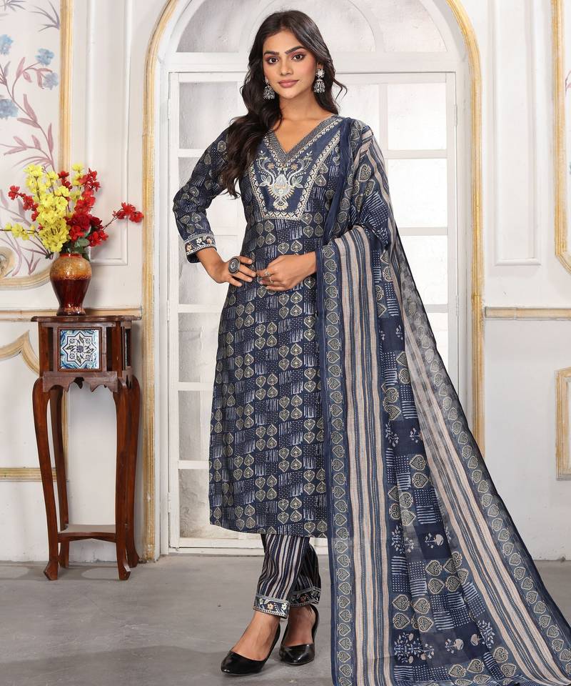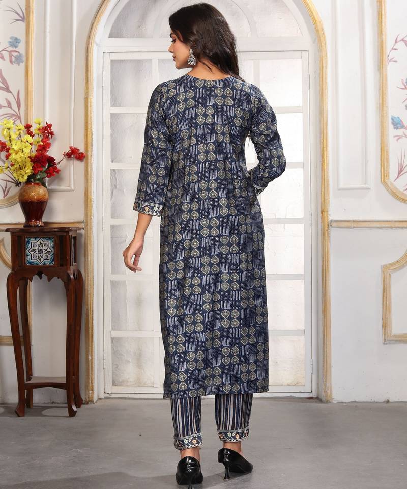 | Product Name | Blue Color Chanderi Fabric Designer Printed Readymade Kurta Set For Trendy Girls | |