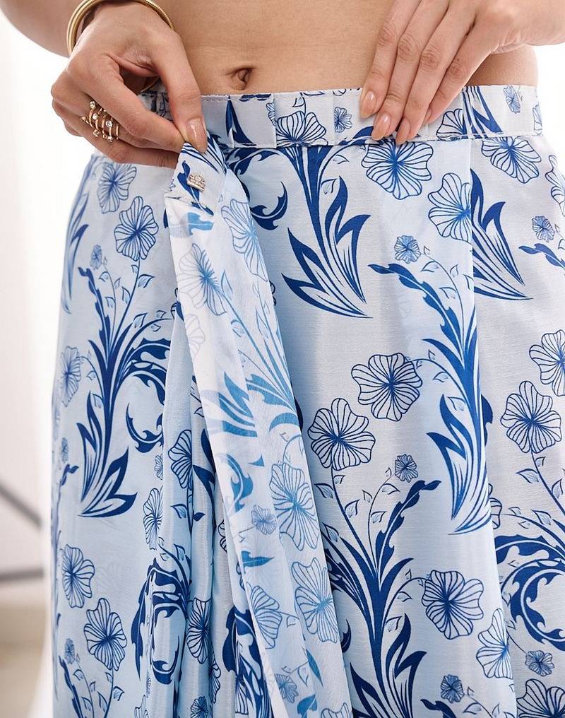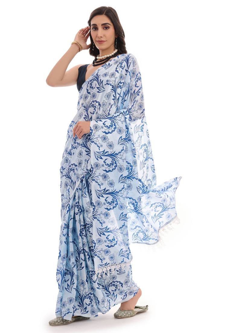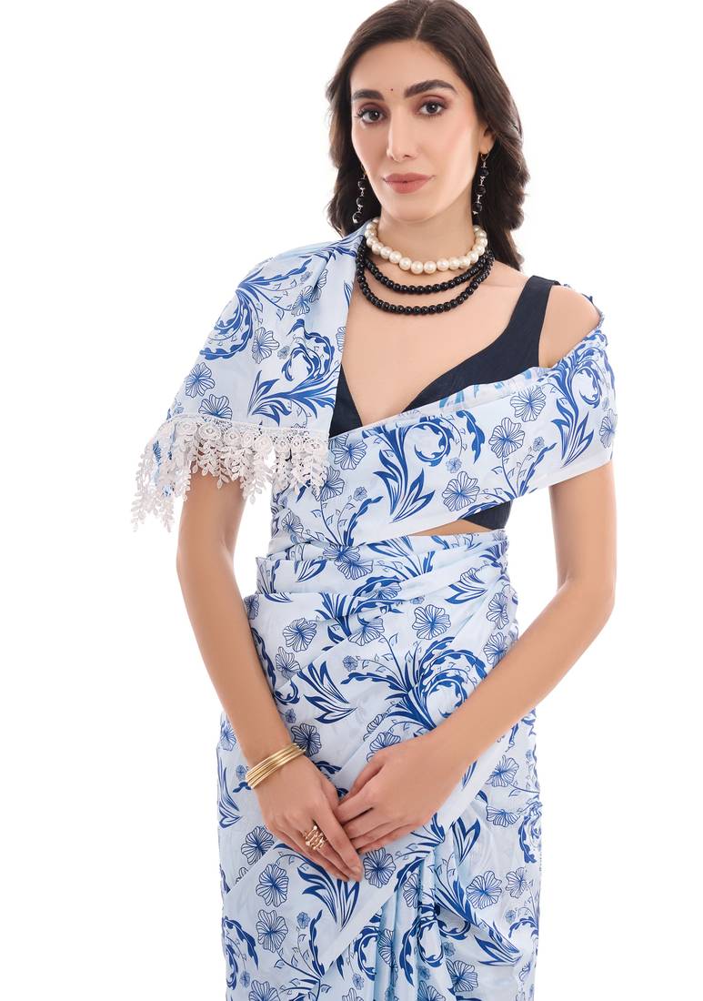 | Product Name | Blue Color Chinon Fabric Designer Digital Printed Ready To Wear Saree | |