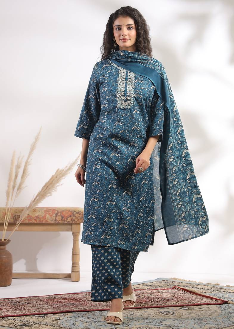 Blue color cotton fabric stylish and trendy kurta set for ethnic girls