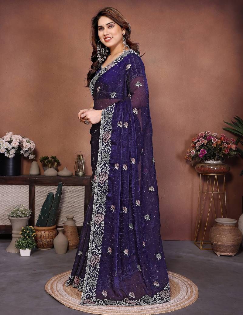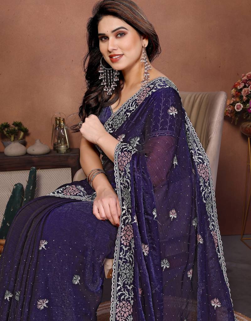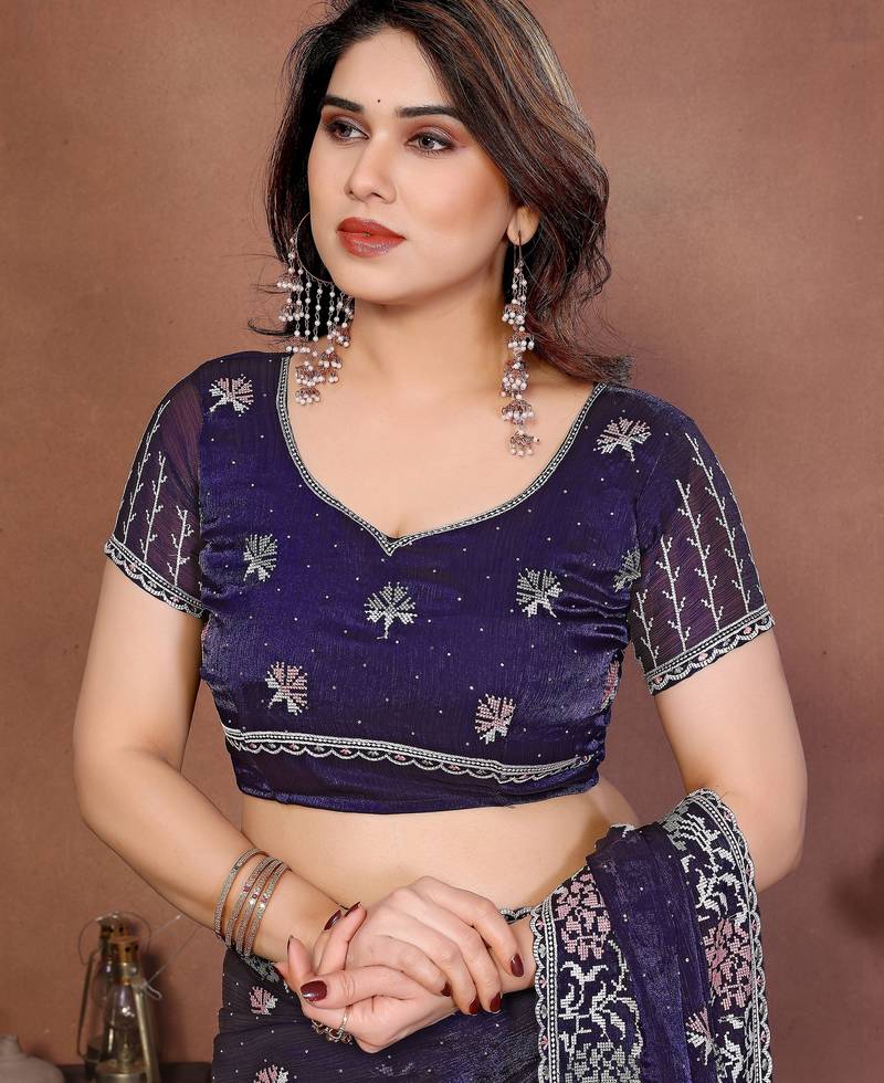 | Product Name | Blue Color Fendy Chiffon Fabric Stylish Bollywood Style Saree | |