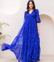 | Product Name | Blue Color Georgette Fabric Beautiful Girlie Gown For Stylish College Looks | |