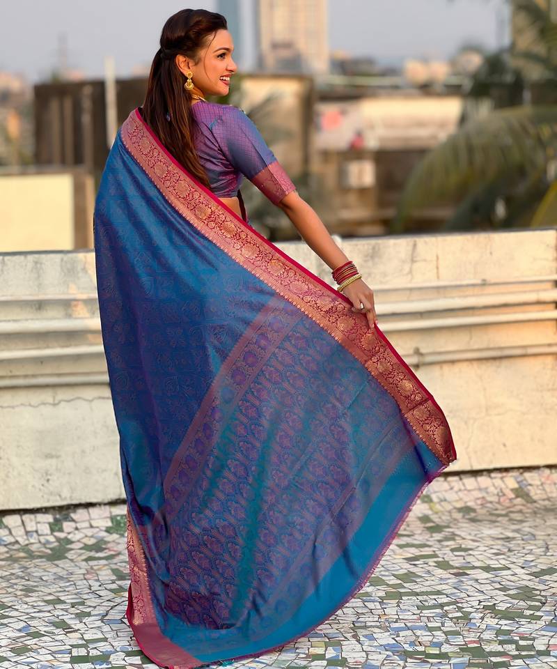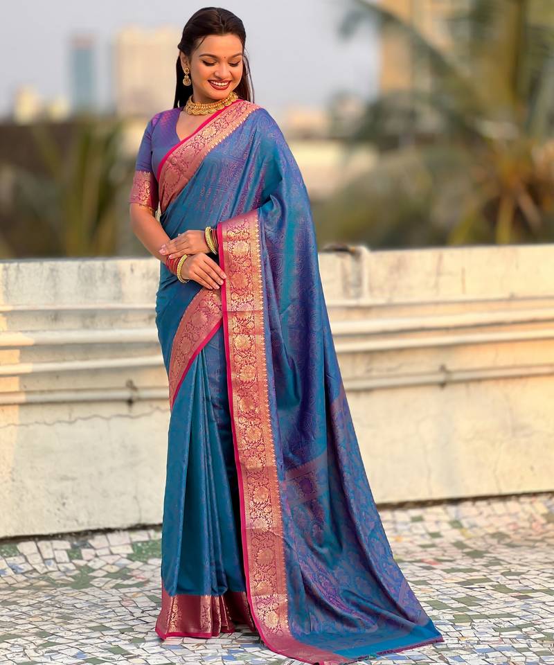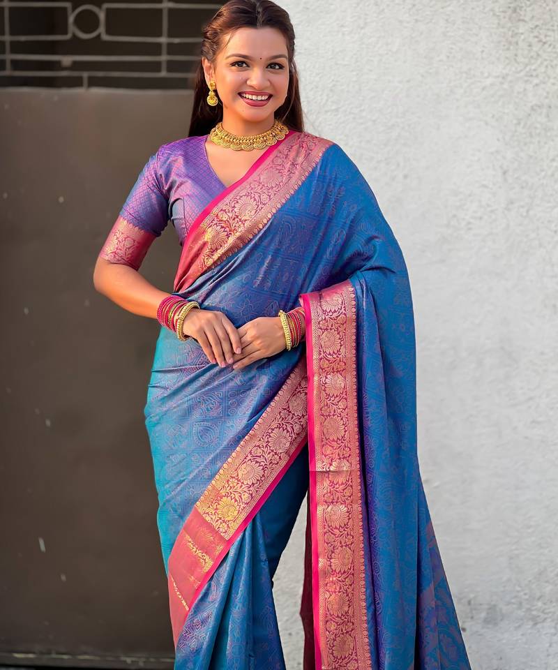 | Product Name | Blue Color Graceful Soft Silk Fabric Woven Designer Saree | |