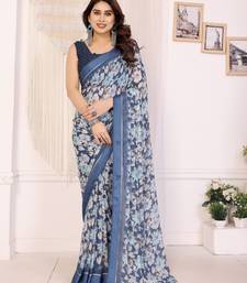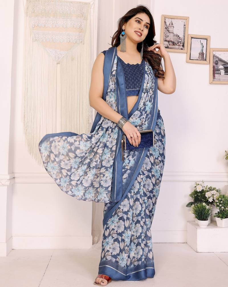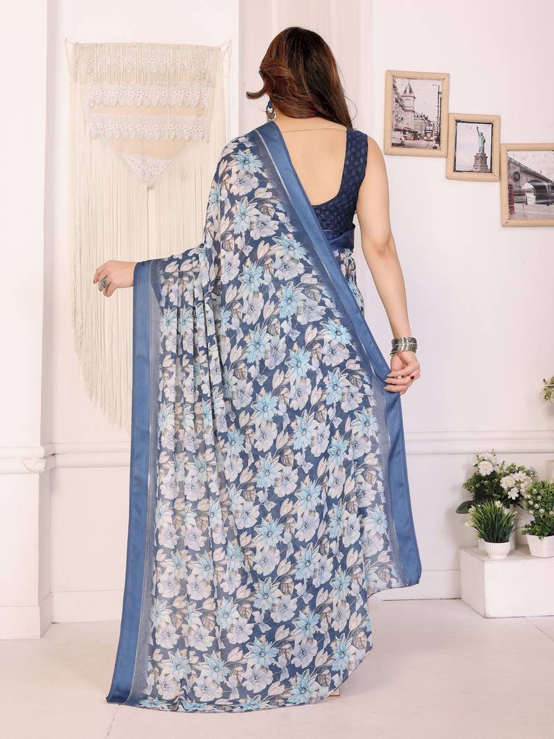 | Product Name | Blue Color Moss Satin Patta Designer Flower Printed Ceremonial Saree | |
