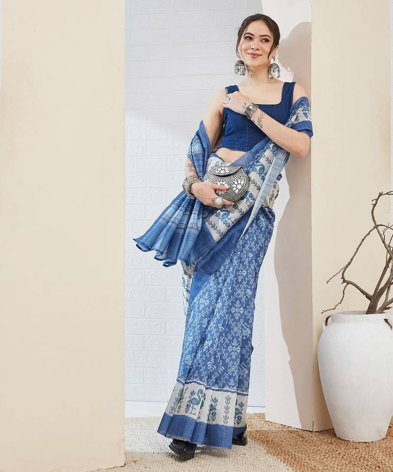 | Product Name | Blue Color Silk Blended Designer Digital Printed Partywear Saree | |