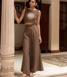 Brown color cotton blended designer trendy top bottom set for trendy girls