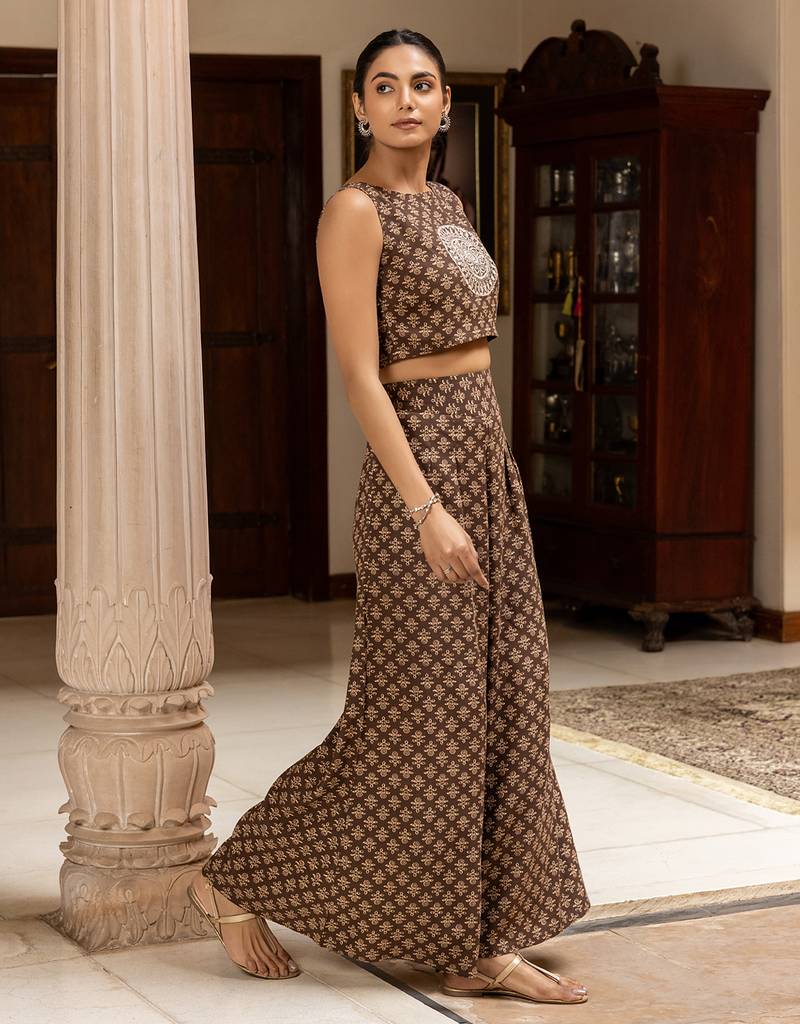 | Product Name | Brown Color Cotton Blended Designer Trendy Top Bottom Set For Trendy Girls | |