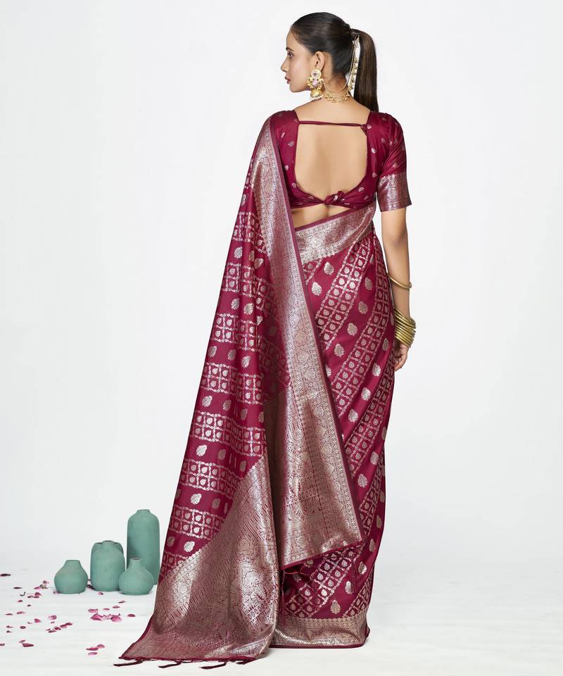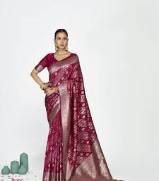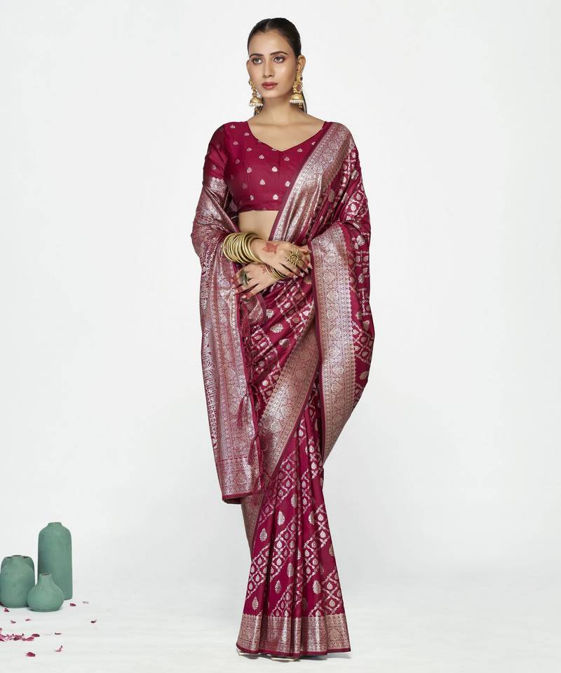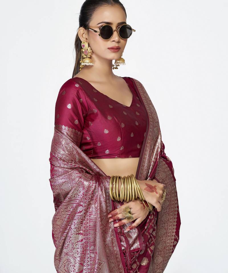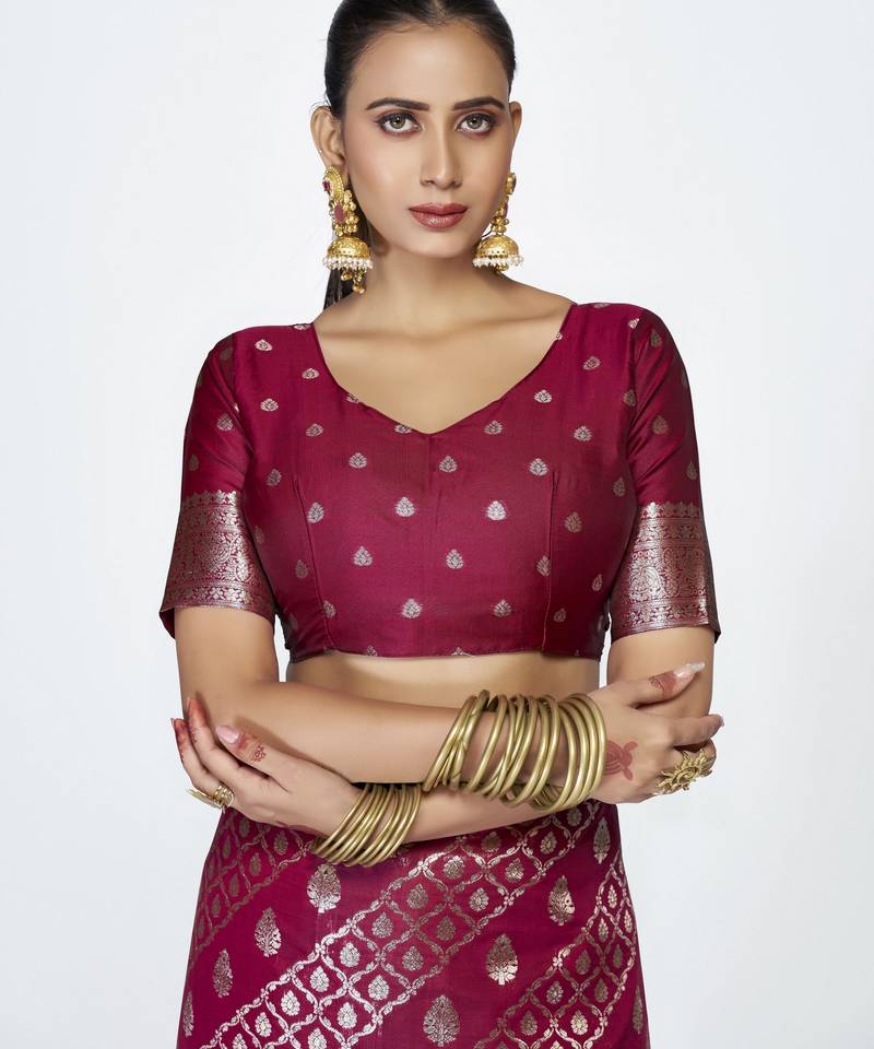 Burgundy color banarasi art silk fabric woven zari designer saree