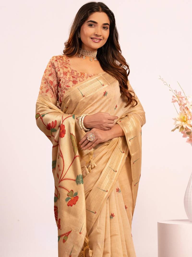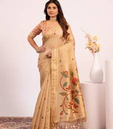 Chiku color muga cotton fabric paithani weaving designer partywear saree