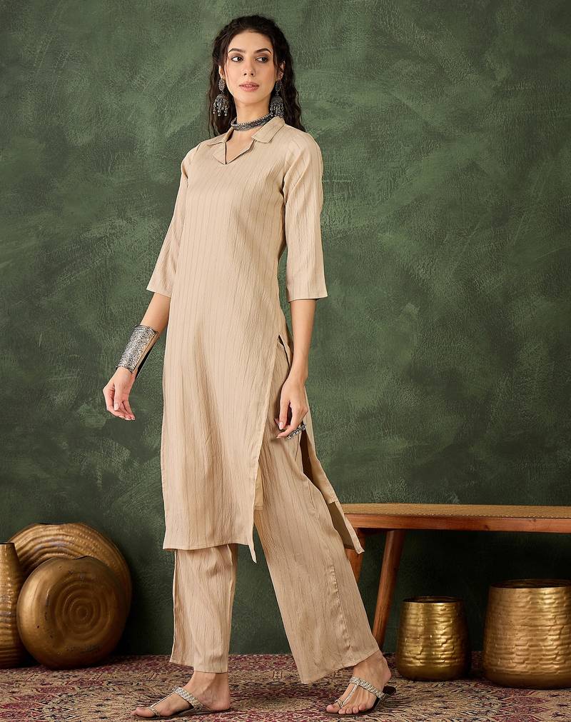 | Product Name | Cream Color Cotton Silk Blend Beautiful Stylish Tendy Top Bottom Set | |