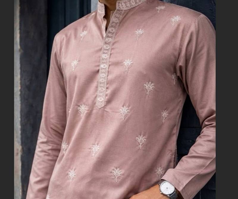 Product Name Dusty Pink Color Designer Embroidered Men's Ceremonial Kurta Payjama