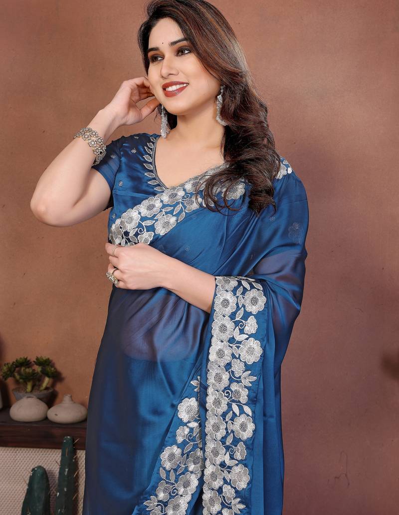 | • | Saree | : | Color- Blue / Fabric- Art Silk |