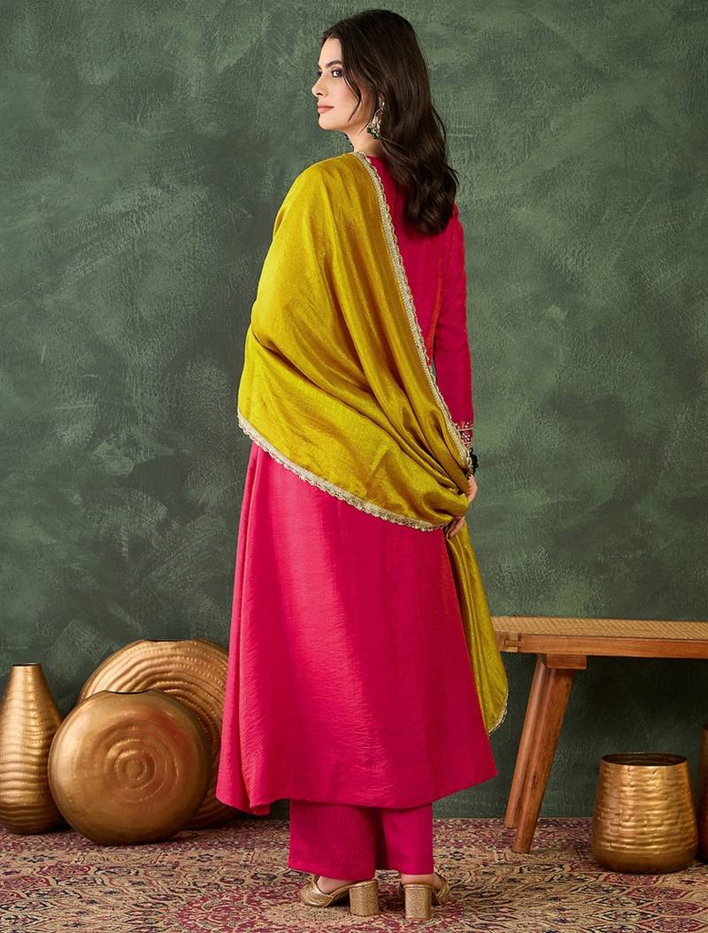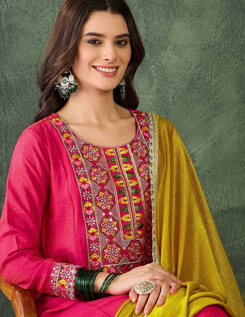 | Product Description | Garb These Beautiful Looking Readymade Suits.These Top Are Vichitra Silk And Bottom Are Vichitra Silk And Vichitra Silk Dupatta Fabricated.Its Beautified With Disigner Embroidery Work. |