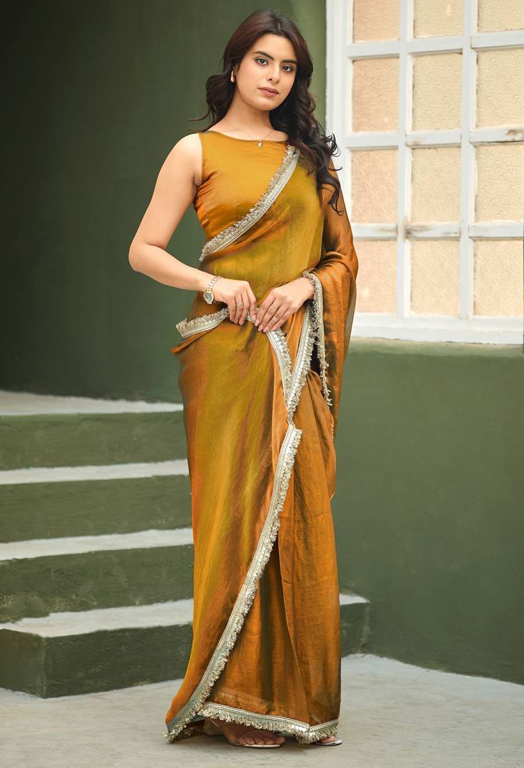 | • | Saree | : | Color- Gold / Fabric- Chiffon |