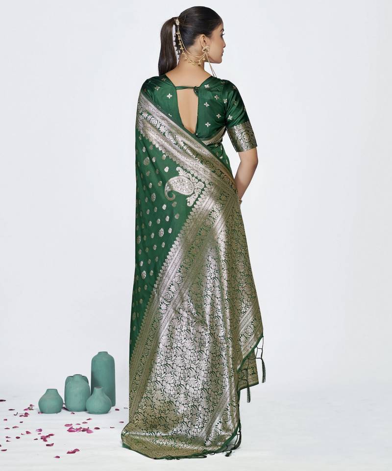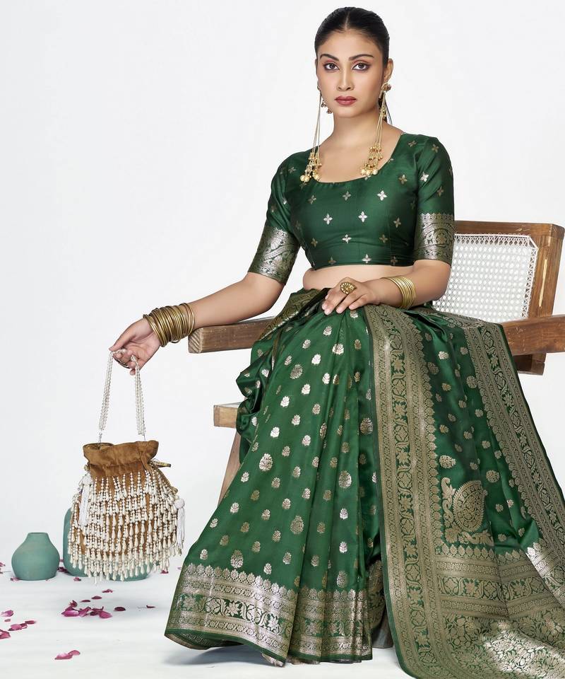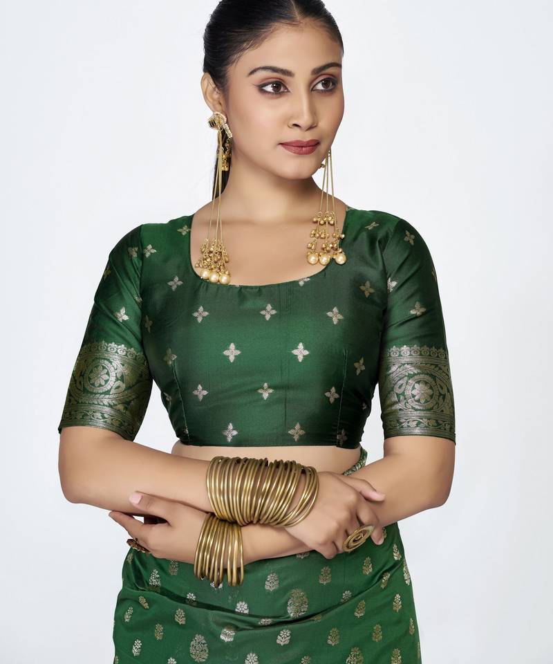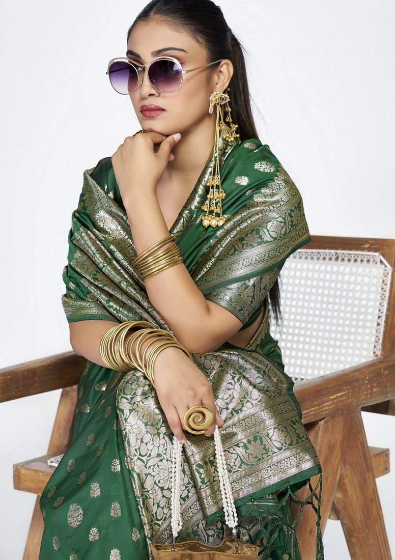 Green color banarasi art silk fabric woven jari butti designer celebrity fancy saree