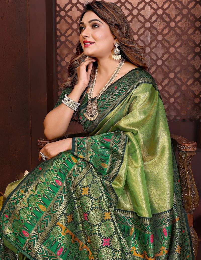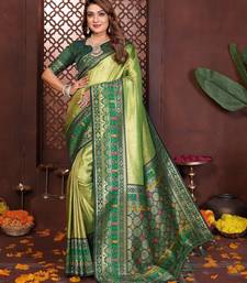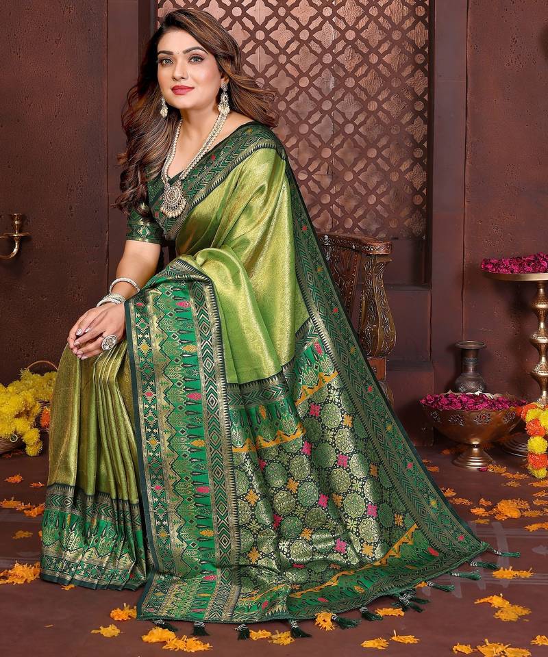 Green color banarasi tissue silk blend blend fabric woven rich paithani designer ethnic partywear saree