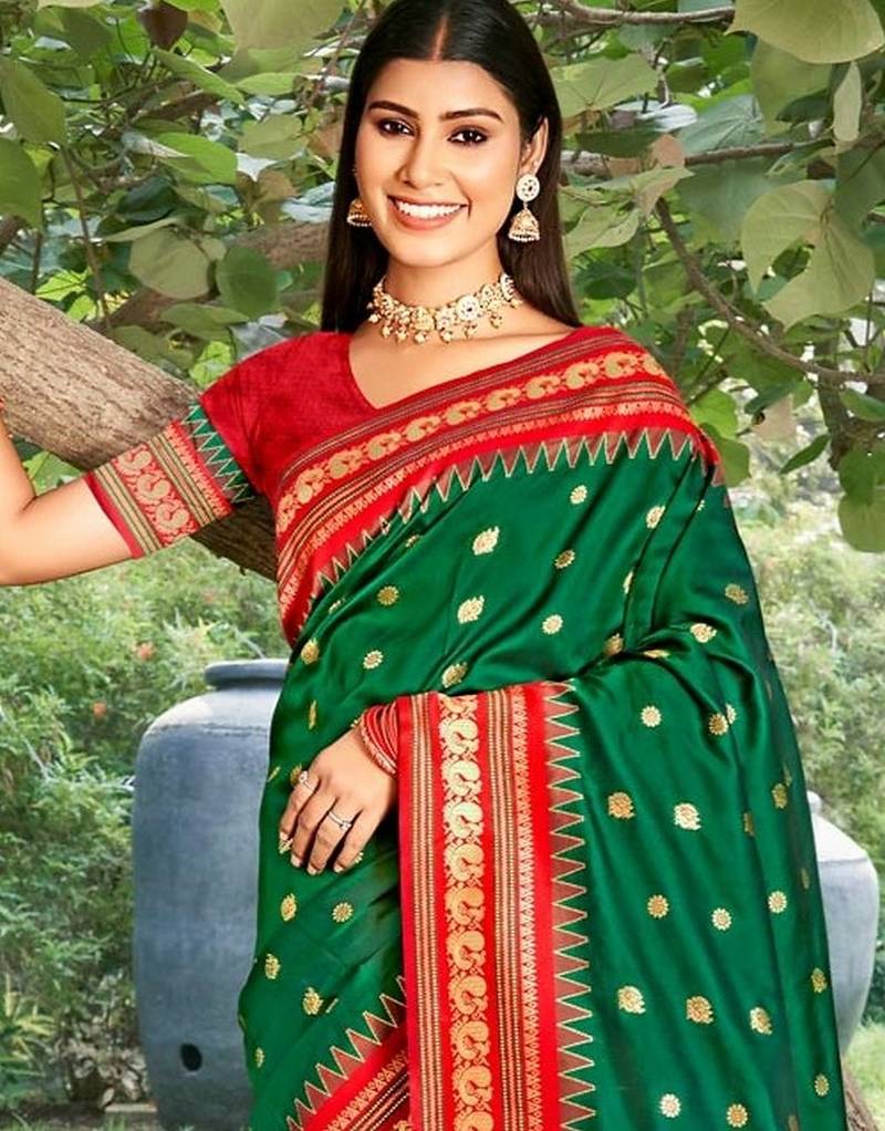 Product Name Green Color Beautiful Woven Designer Soft Silk Blend Fabric Saree