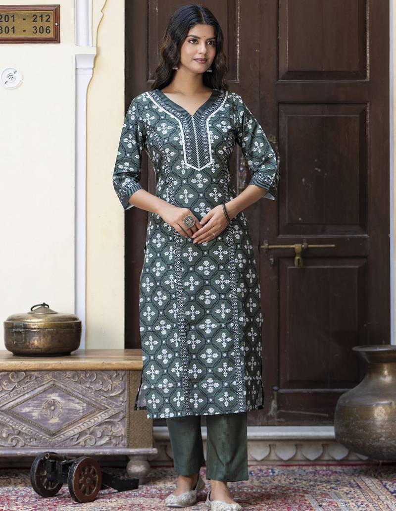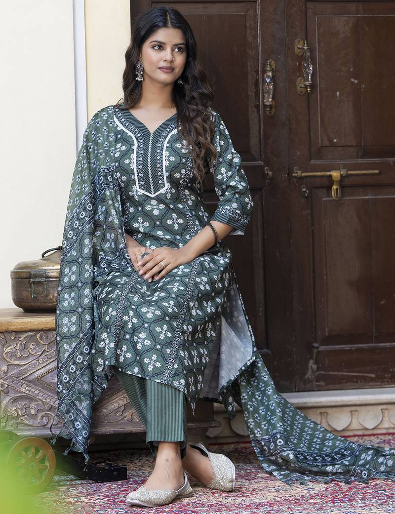 | Product Name | Green Color Cotton Blended Designer Floral Printed Ethnic Partywear Suit | |
