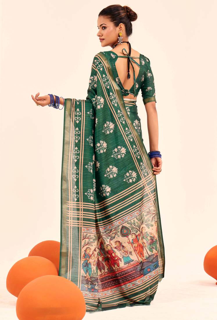 | Product Name | Green Color Cotton Art Silk Fabric Designer Digital Printed Saree | |