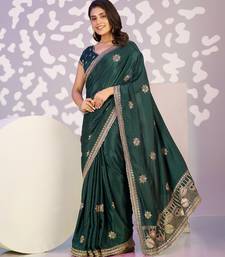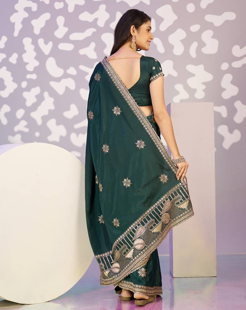 Green color crepe fabric embroidery work ready to wear saree