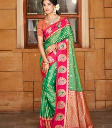 Green color ethnic woven designer partywear saree