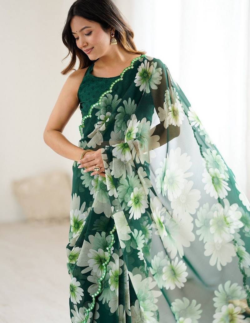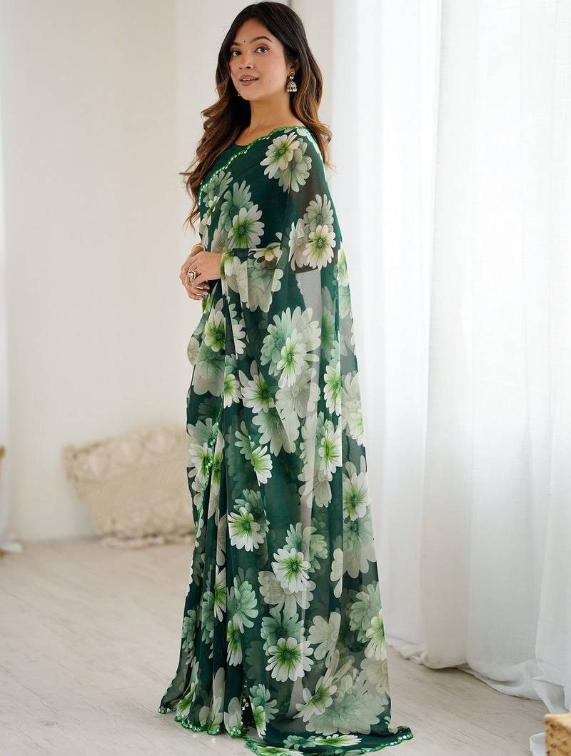 | Product Name | Green Color Georgette Fabric Designe Floral Printed Bollywood Style Saree | |